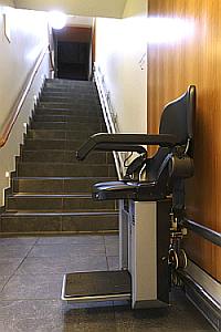 Gehbehinderte erreichen uns bequem per Treppenlift.